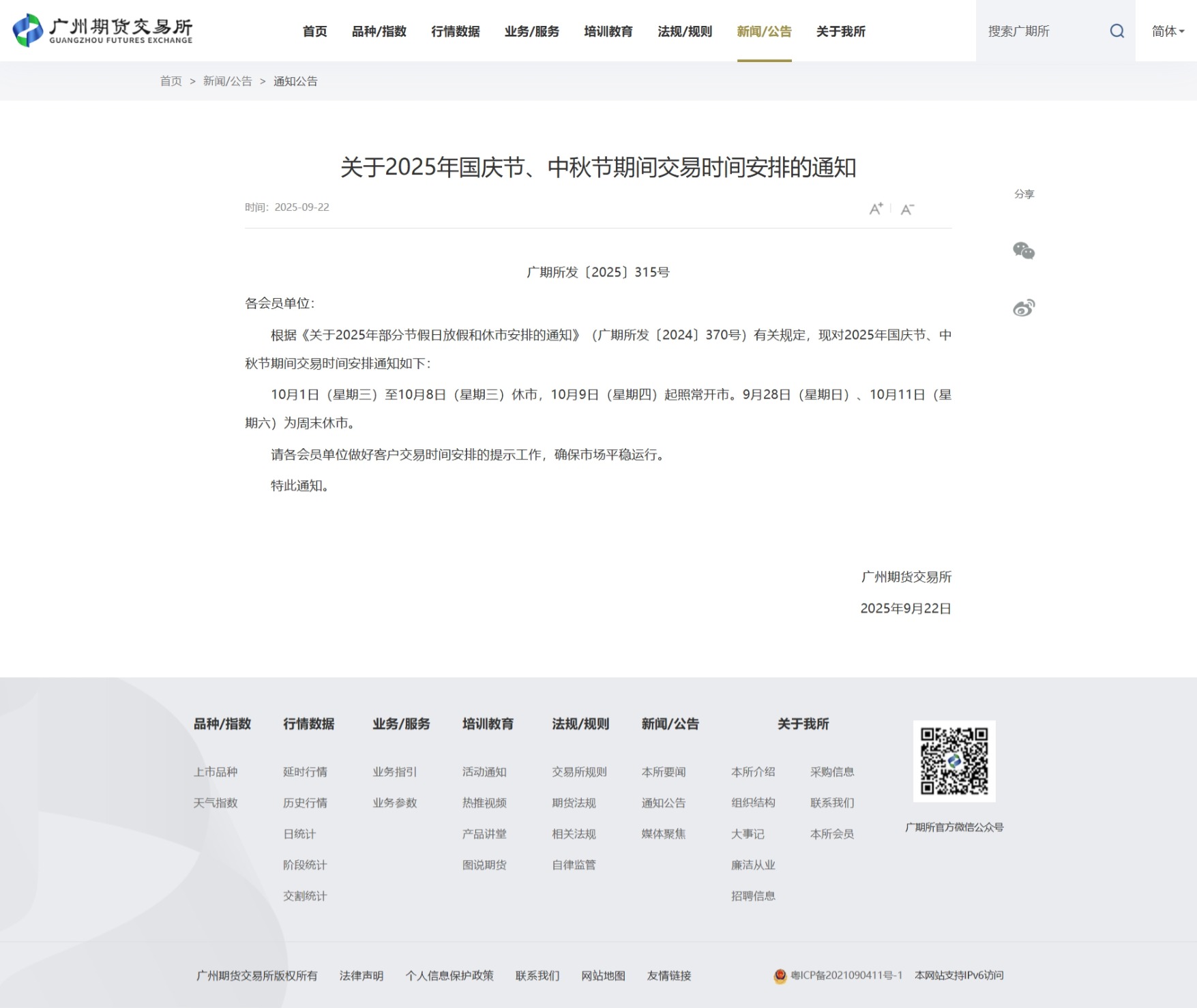 转发关于2025年国庆节、中秋节期间交易时间安排的通知