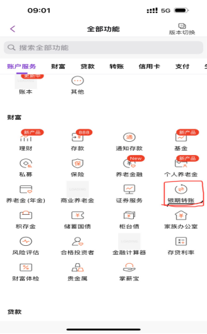 客户进入光大银行手机app -首页-全部-财富-银期转账
