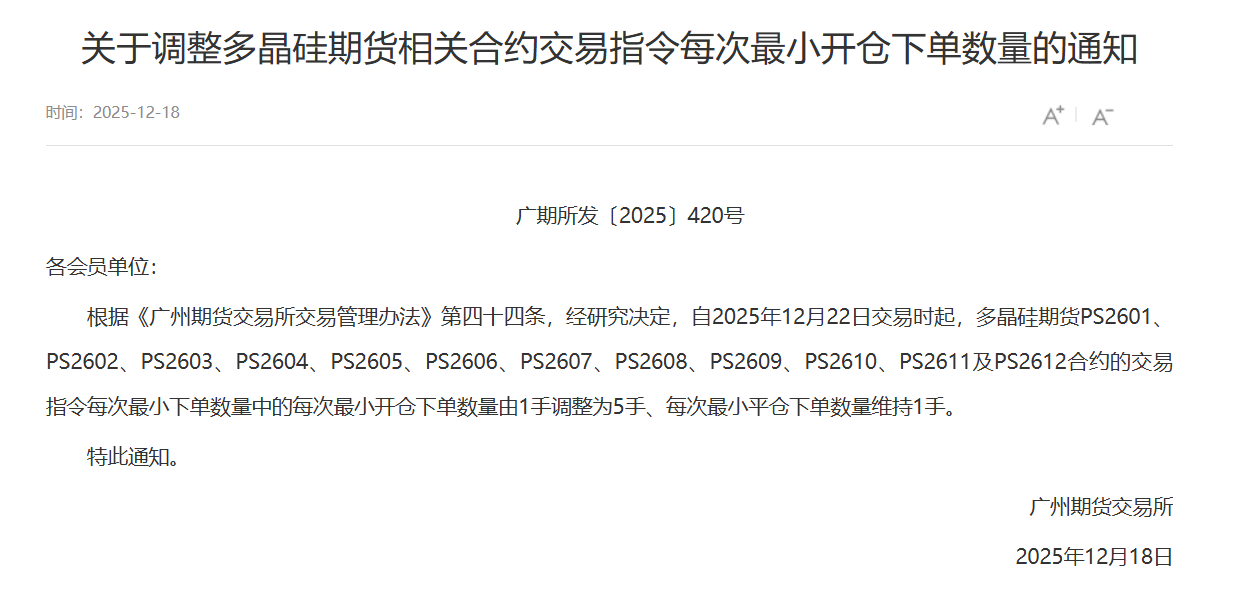 转发关于调整多晶硅期货相关合约交易指令每次最小开仓下单数量的通知