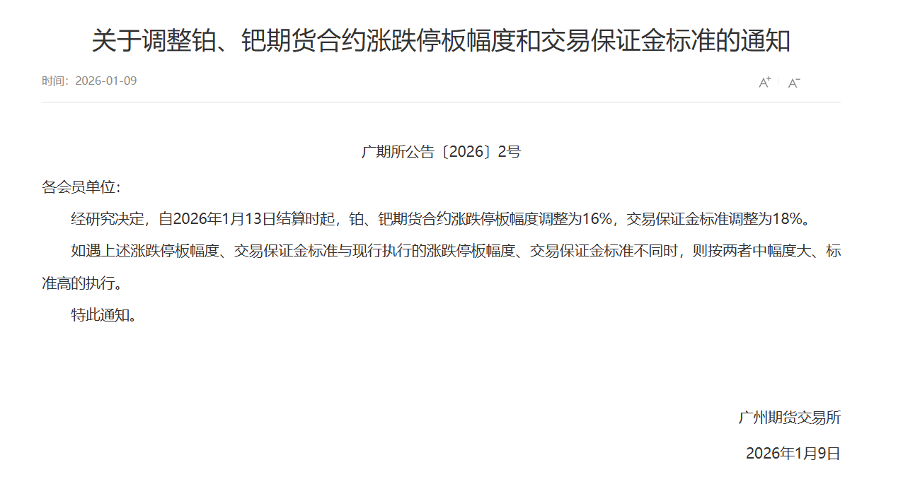 转发关于调整铂、钯期货合约涨跌停板幅度和交易保证金标准的通知