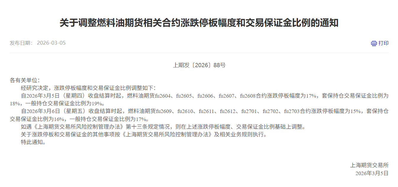 转发关于调整燃料油期货相关合约涨跌停板幅度和交易保证金比例的通知