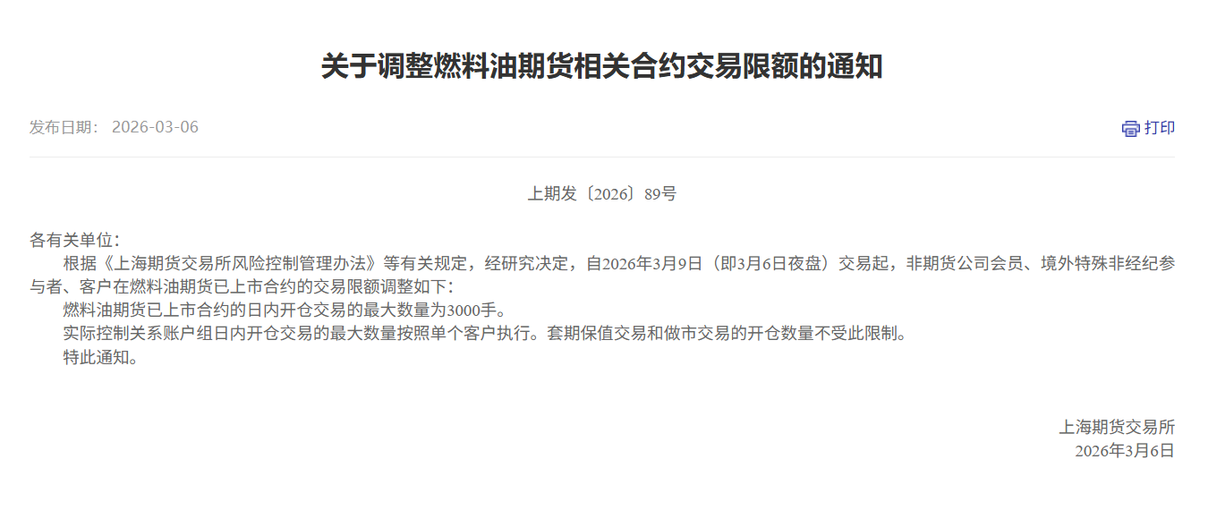 转发关于调整燃料油期货相关合约交易限额的通知
