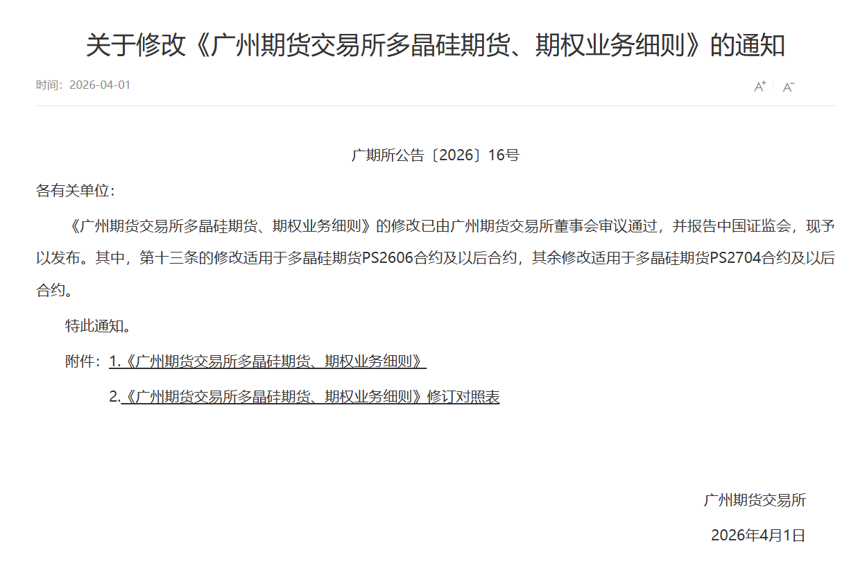 附件地址:http://www.gfex.com.cn/gfex/tzts/202604/8e2e876e29de41eeb6419f0dccdcdfe1.shtml