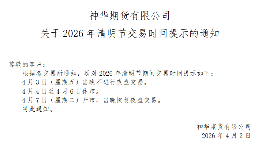 神华期货有限公司关于2026年清明节交易时间提示的通知